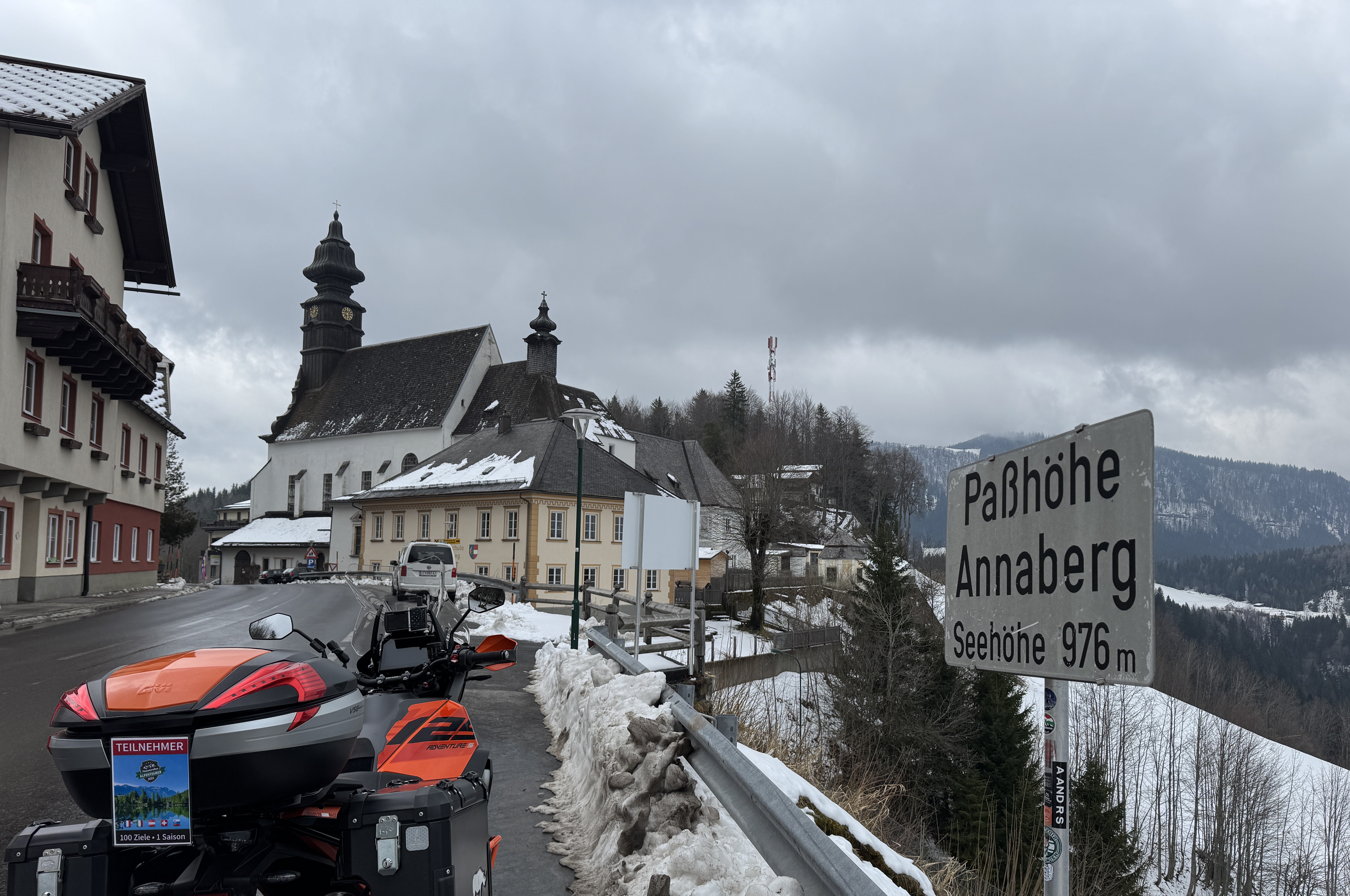 Die über den 976 Meter hohen Annaberg führende Passstraße ist als Mariazell Straße B20 ausgewiesen und bietet auf der gesamten Strecke Fahrspaß pur. Die Route startet in Türnitz. Insgesamt sechs sehr schön ausgebaute Kehren führen nach fast zwölf Kilometern Anlauf auf den Scheitel und damit auch in die Gemeinde Annaberg, die sich dort oben im niederösterreichischen Mostviertel befindet. Die Gemeinde ist eine der Wallfahrstationen auf dem Pilgerweg von Wien nach Mariazell, trotzdem hält sich der Verkehr insgesamt sehr in Grenzen. Einen Besuch wert ist die St. Anna-Wallfahrtskirche mitten im Ort. Wer mit Architektur und/oder Religion wenig anzufangen weiß, kann von hier aus den Anblick auf die umliegenden Gipfel wie das Hennesteck (1.334 Meter), den Tirolerkogel (1.377 Meter) oder mit etwas Glück auch bis zum mit 1.892 Meter höchsten Berg des Mostviertels – dem Ötscher – genießen. Gleiches gilt für die Kehren 7 und 8 auf dem Weg nach Wienerbruck. Bei Lassingrotte zweigt zuvor bereits die B28 Richtung Puchenstuben ab, die über den Sattel Wastl am Wald führt. Als Endpunkt haben das bewußt das Naturparkhaus Ötscher in Wienerbruck gesetzt, wo man einkehren und sich zudem über diesen eher unbekannten Teil alpiner landschaft informieren kann. In südlicher Richtung schließt danach übergangslos der Josefsberg an, dessen Befahrung sich ebenfalls lohnt. Auch weil die am Annaberg begonnene Kehrenzählung hier noch weitergeführt ist. |
