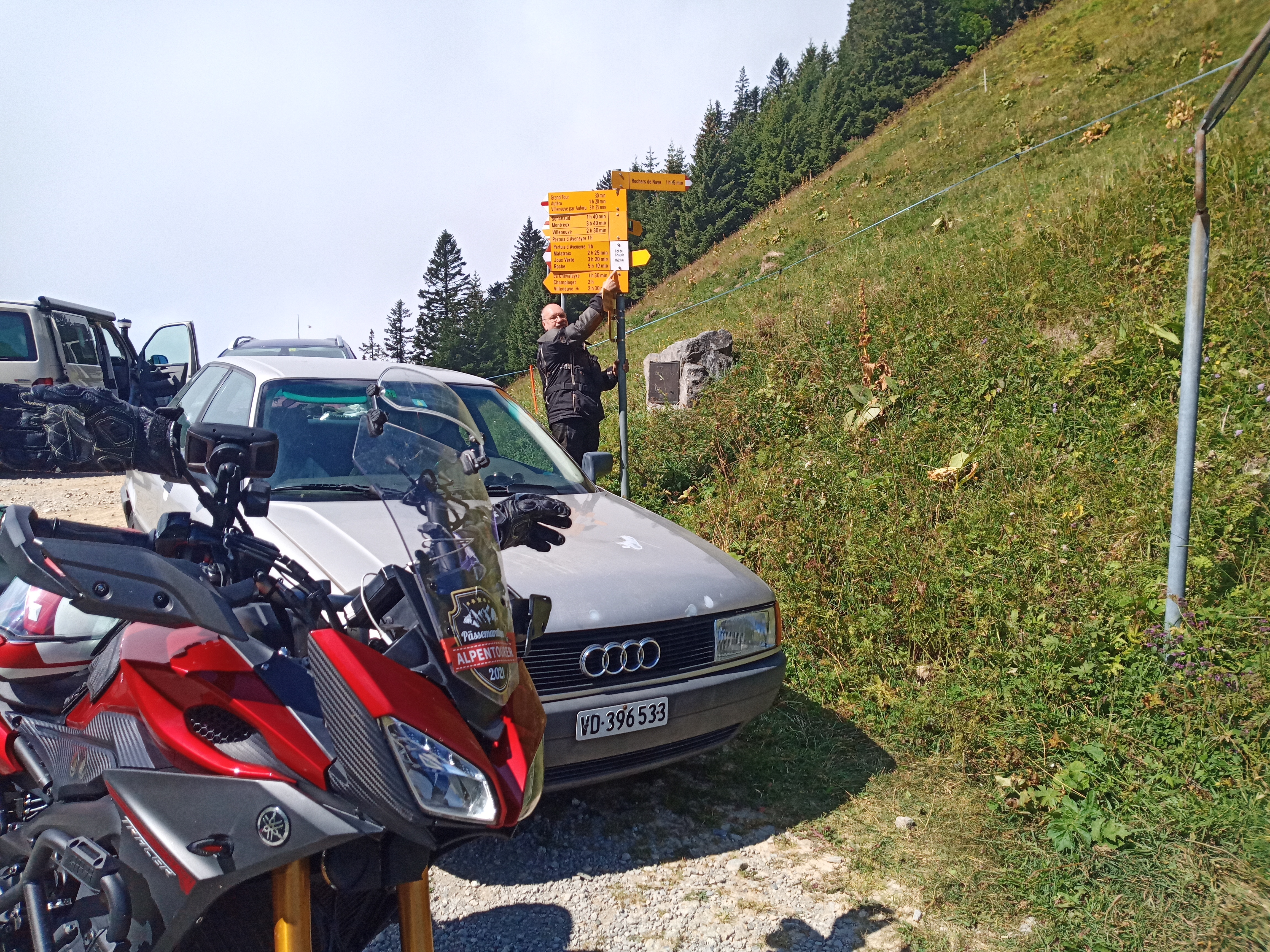Der Chaude-Pass ist nur noch von Villeneuve aus erreichbar, wo die asphaltierte Anfahrt nahe des Genfer Sees beginnt. Die Strecke windet sich an der Tinière entlang bis hinauf zur Scheitelhöhe, die knapp über der Baumgrenze liegt und bei klarer Sicht einen tollen Rundum-Blick über das zu Füßen liegende Gewässer bietet. Vom Scheitel geht die Fahrt nur noch wenige hundert Meter bis zur Alp Chaude hinab. Die vorhandenen Wege zum Col de Sonloup und Col de Jaman sind schon länger gesperrt bzw. nicht befahrbar. |