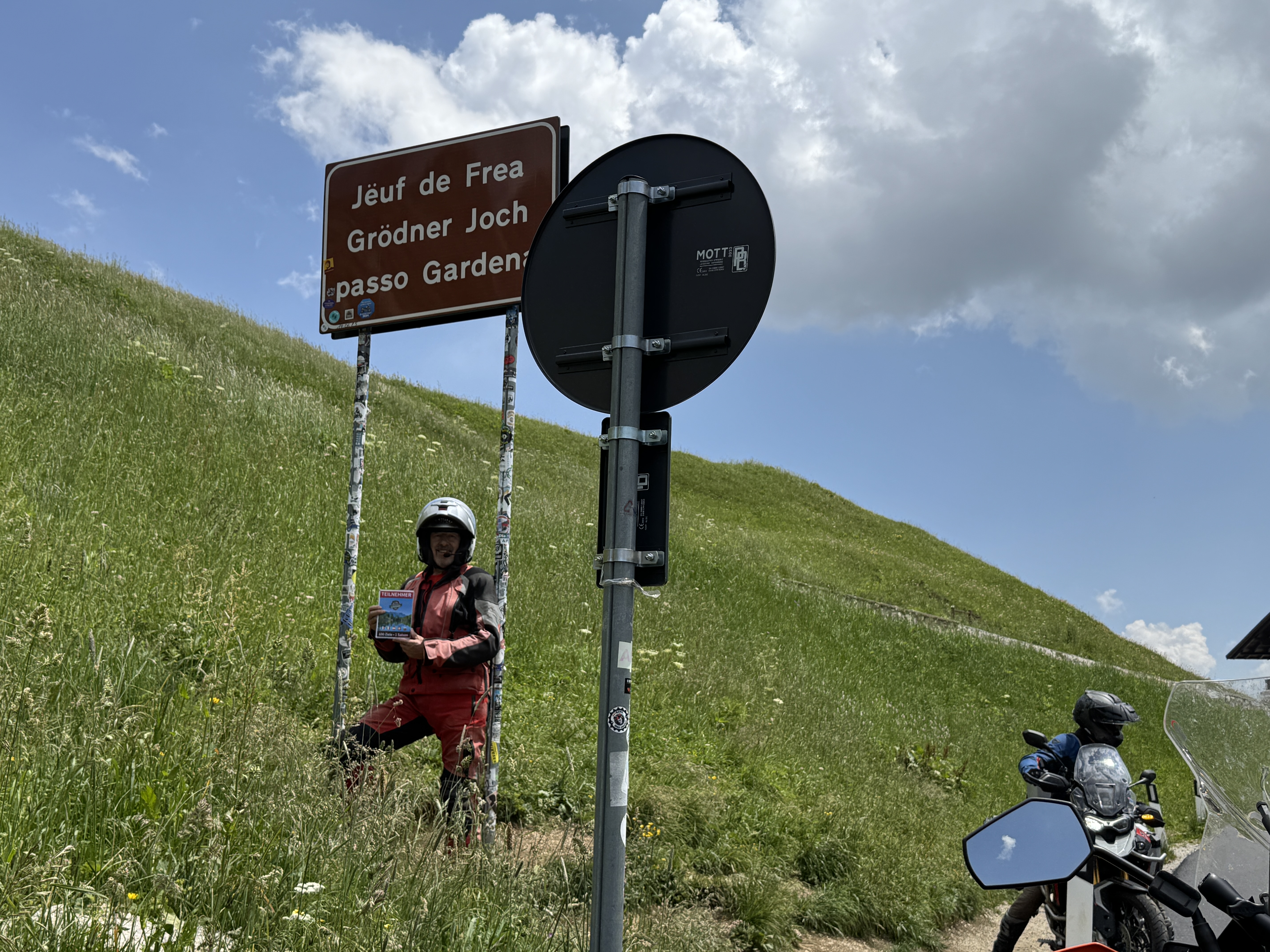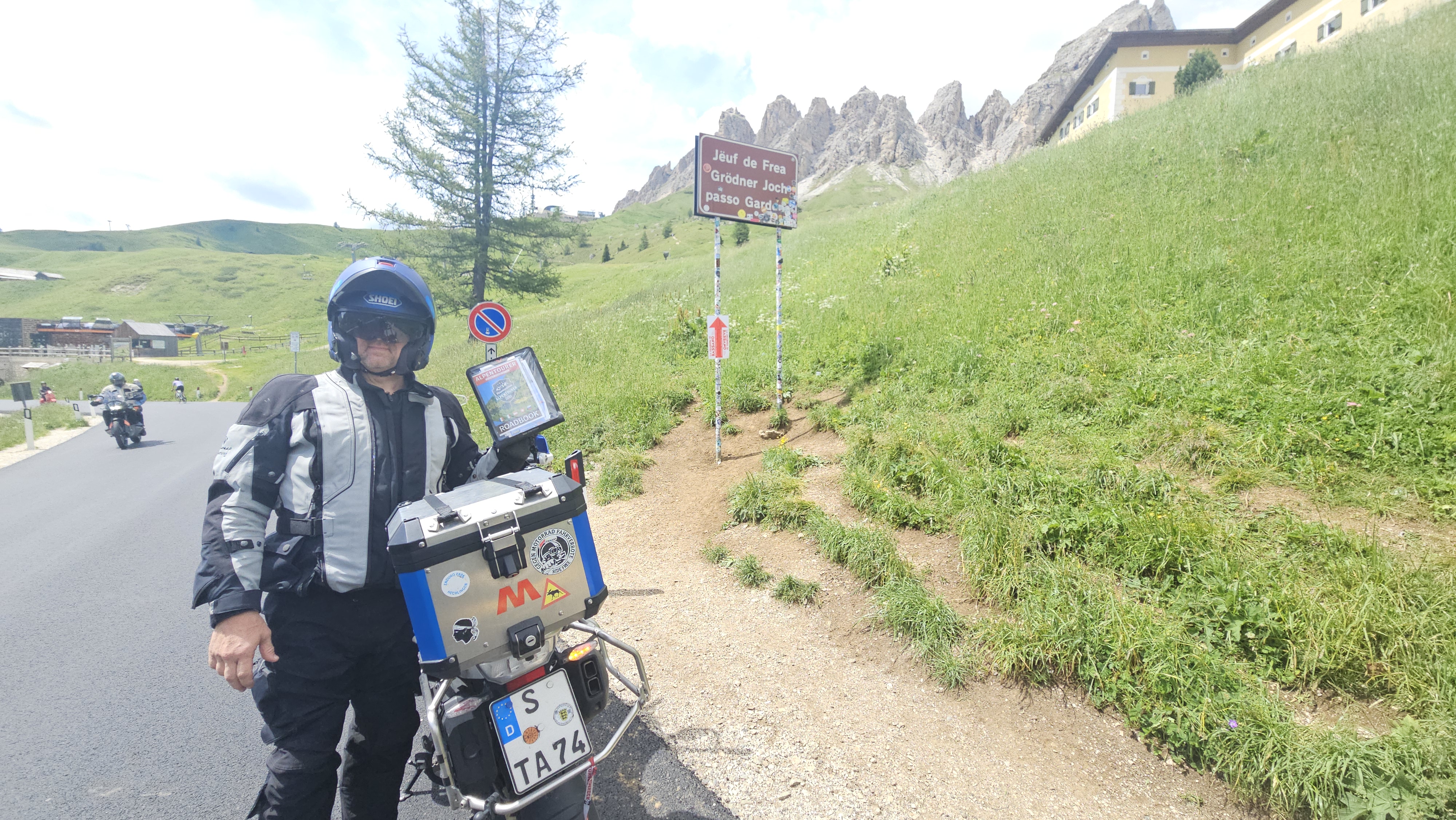 Nur gute 15 Kilometer lang ist die SS243 über das Grödner Joch, mit der die Gemeinden Selva di Val Gardena und Corvara in Südtirol-Trentino miteinander verbunden werden. Gezählt wird ab dem Abzweig von der SS242, die selbst zum Sellajoch weiterführt und bis zur Einmündung in die SS244 in Corvara. Uneinigkeit herrscht teilweise auch über die genaue Lage des Passes. Die offiziellen Geodaten (GPS 46.550000, 11.809444) liegen sogar neben der Strecke. Ein Passchild steht dafür bei GPS 46.550028, 11.807889, meistens wird der Punkt aber am Grödner Hospiz gesetzt (GPS 46.549667, 11.806355). Trotz der Kürze und dieses Wirrwarrs sollte man das Grödner Joch keinesfalls unterschätzen. Die Fahrt über den Pass gehört zu den berühmten Strecken der Sellarunde und bietet eine Streckenphysik, die Motorradfahrer zum Jubilieren bringen. Voraussetzung ist natürlich, die Straße ist nicht zu überfüllt, was in den Ferienmonaten mittlerweile der Fall ist. Landschaftlich äußerst reizvoll sind die Ausblicke auf den Sellastock sowie die Cirspitzen, die schon das Tor zum Naturpark Puez-Geisler bilden. Die Kehren haben es zudem teilweise ganz schön in sich. |