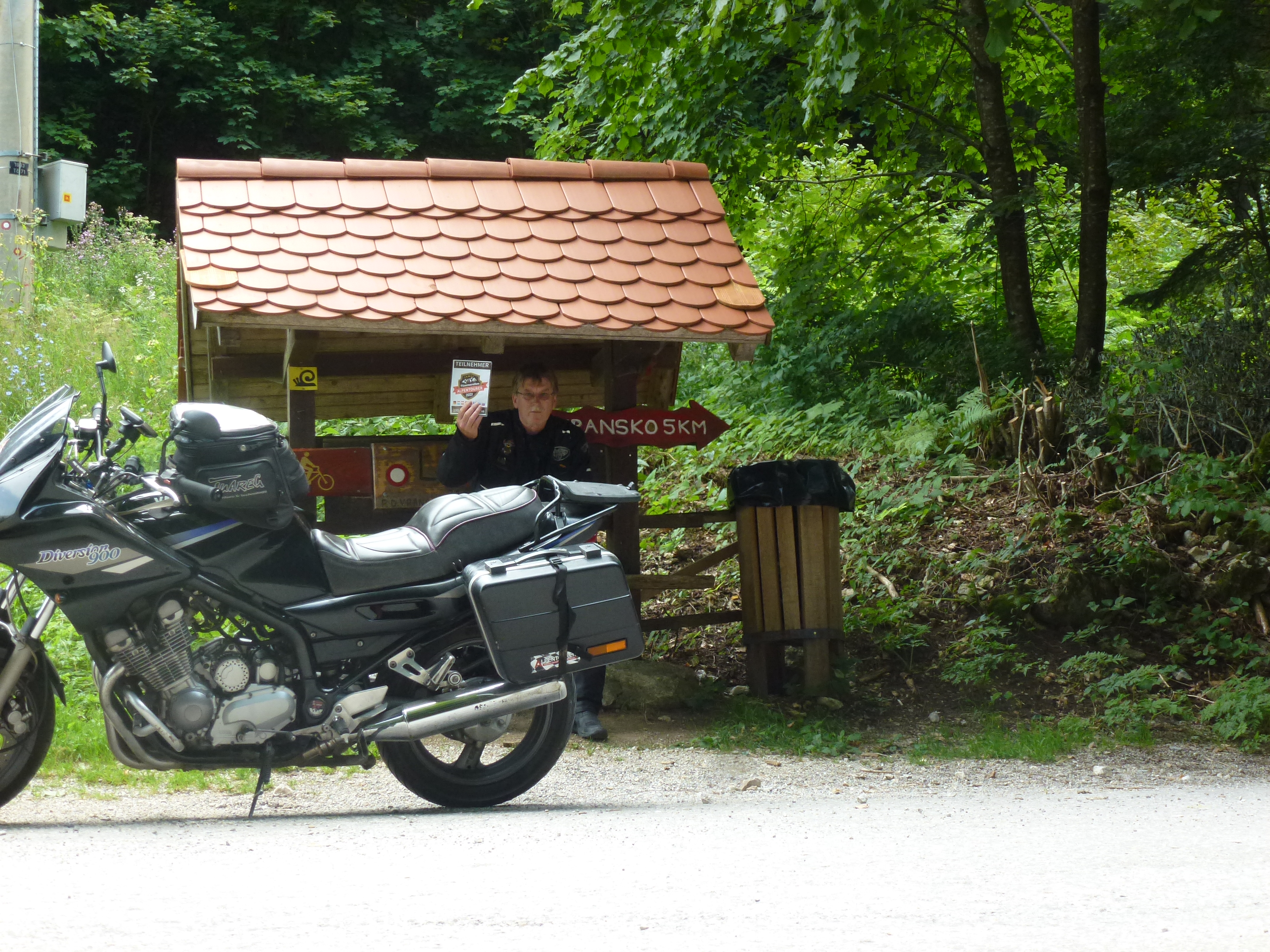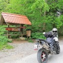 Der Ausflug über den Bergkamm beginnt in Vransko, direkt vor den Toren des privaten Motorrad-Museums. Die schmale Straße führt zum Scheitelpunkt hin weitgehend durch Wald, eröffnet aber vor allem bei der Abfahrt nach Šmartno ob Dreti nette Ausblicke sowie einige interessante Kurven-Kombinationen. Bei dem geringen Verkehr ein Spaß – wie so viele der kleinen, slowenischen Straßen. |