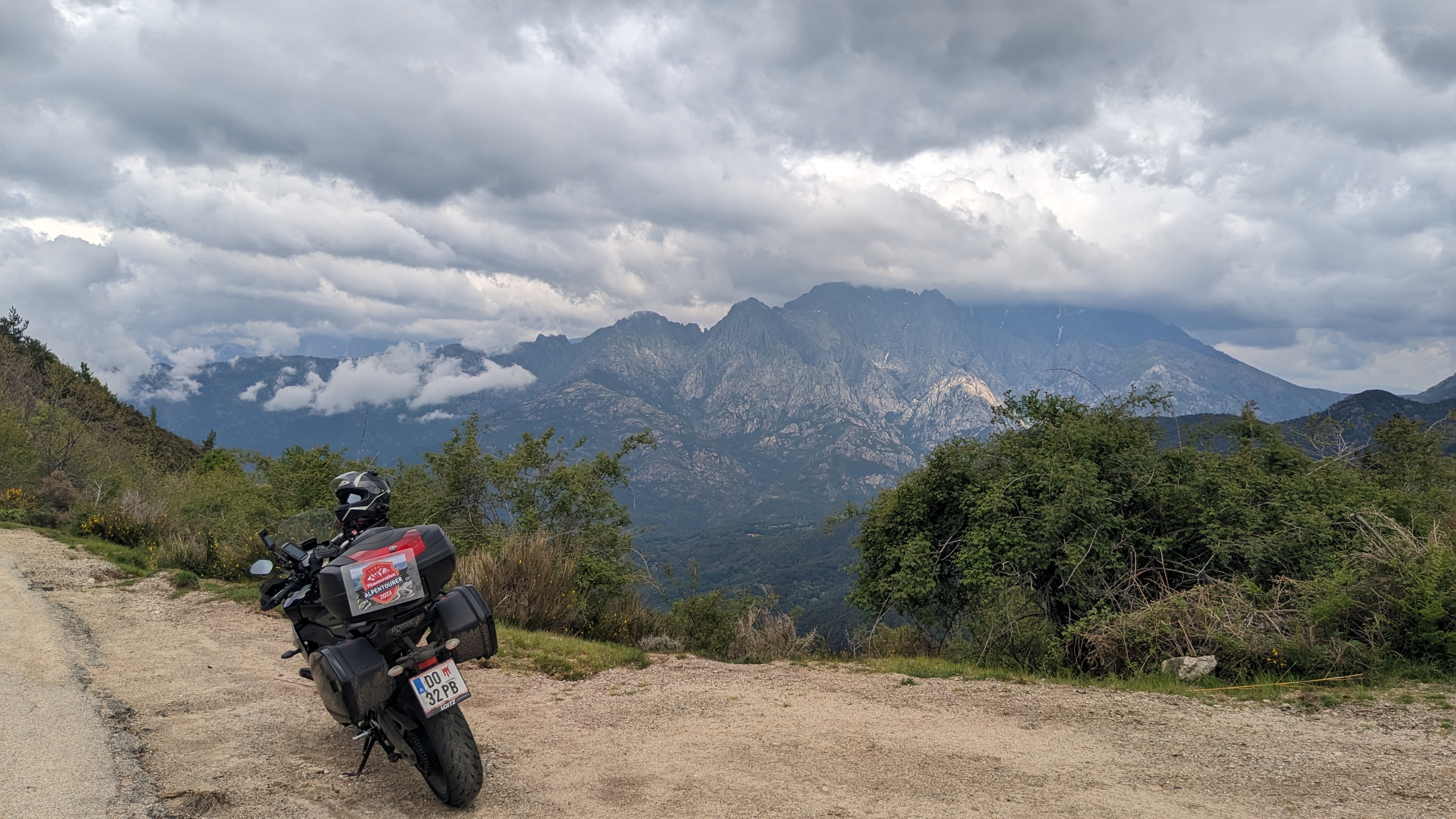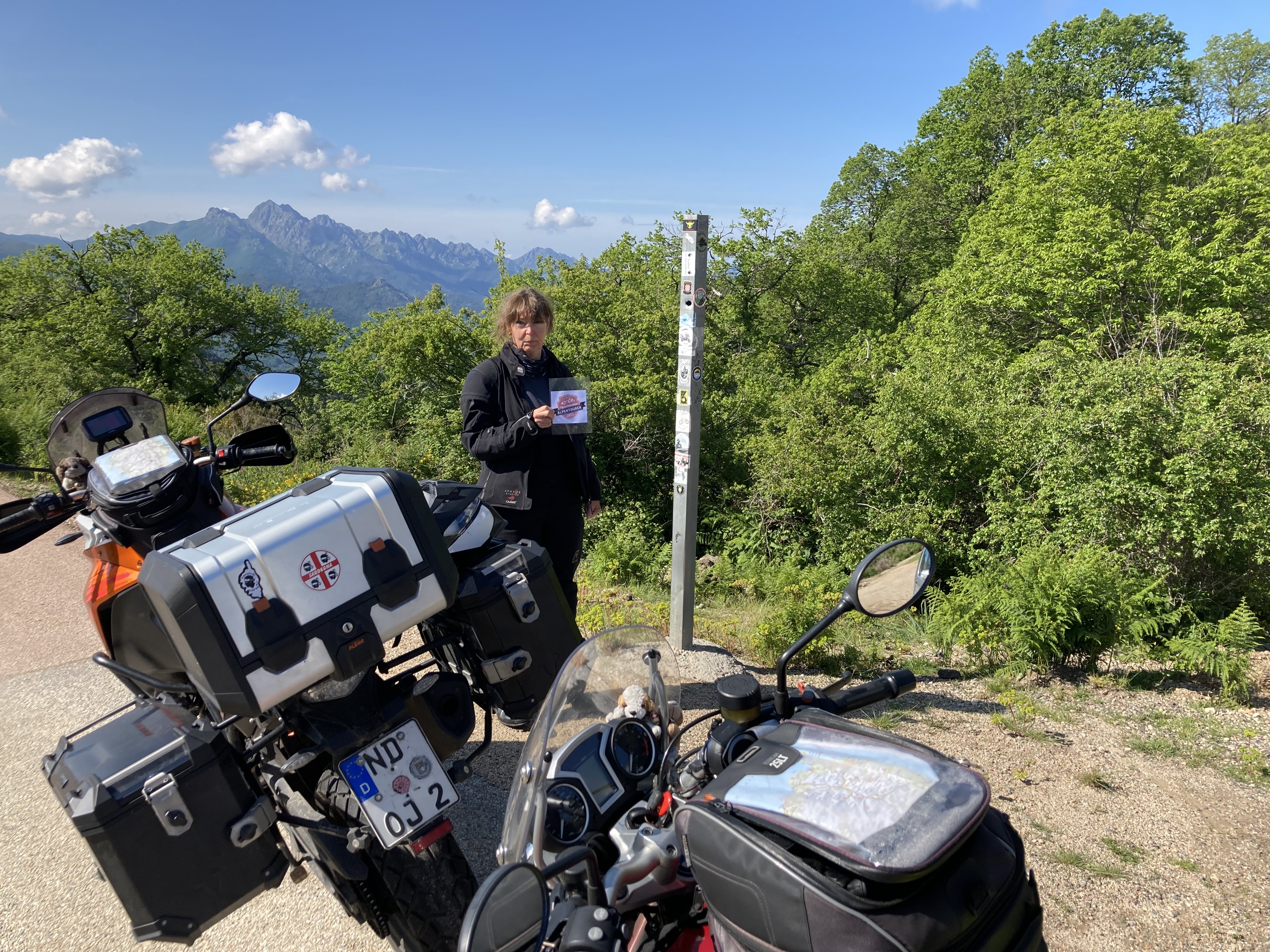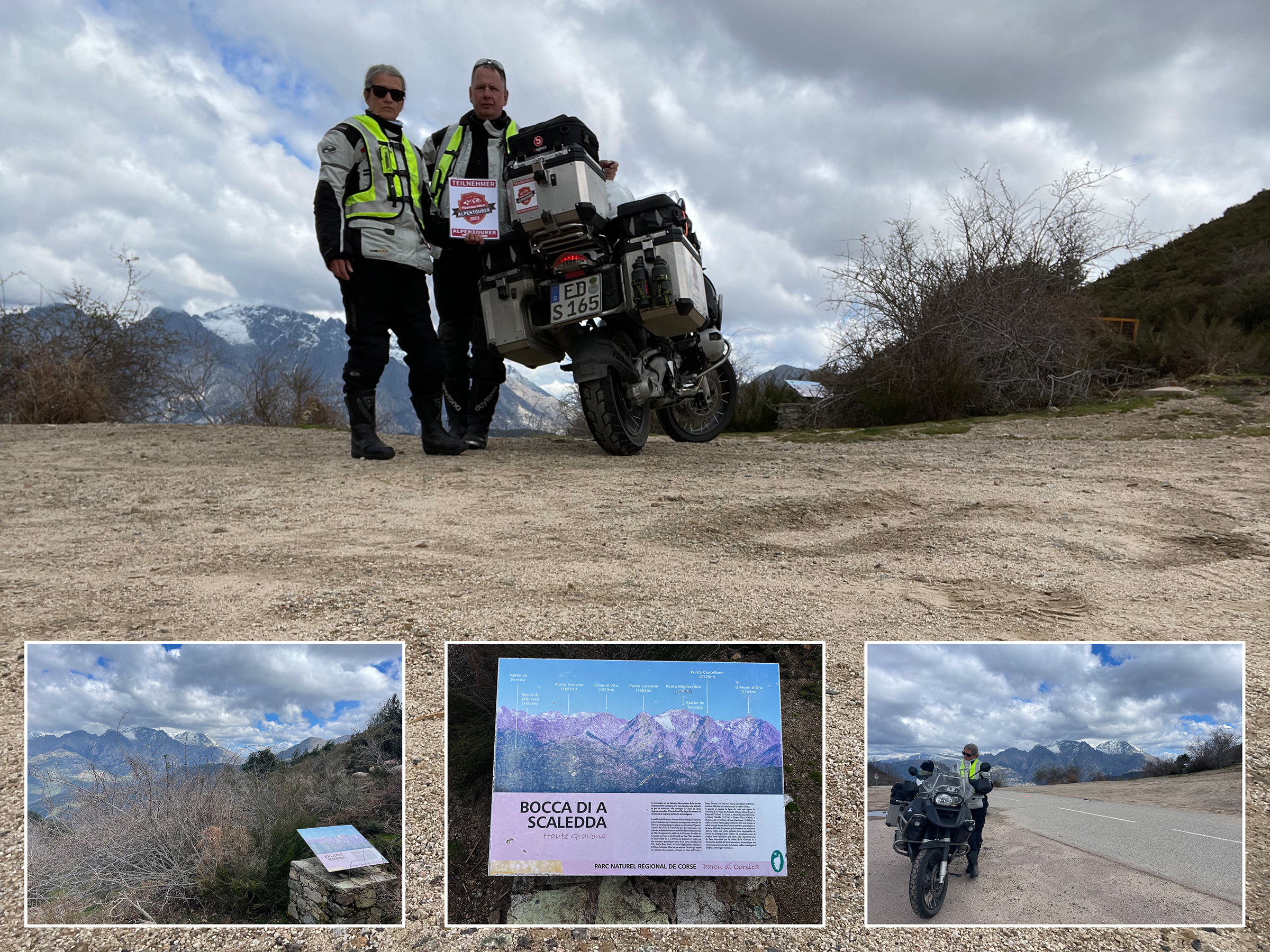 Nachtrag: Das Schild mit der Beschreibung der Berggipfel (haben einige genommen) ist aktuell nicht mit dem Motorrad erreichbar, das Unwetter hat eine breite, tiefe Rinne ausgeschwemmt, der gesamte Bereich war heute aufgeweicht...