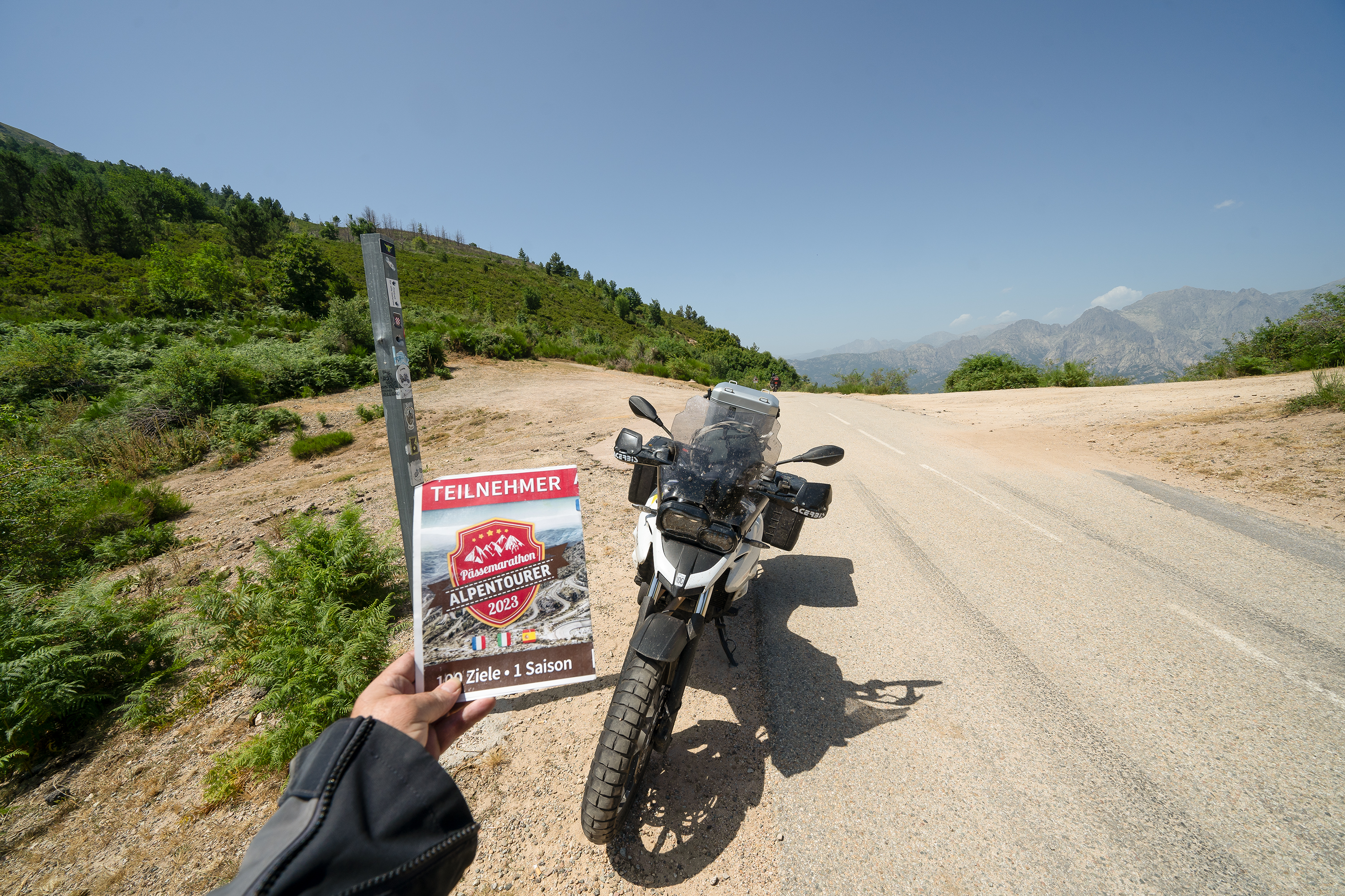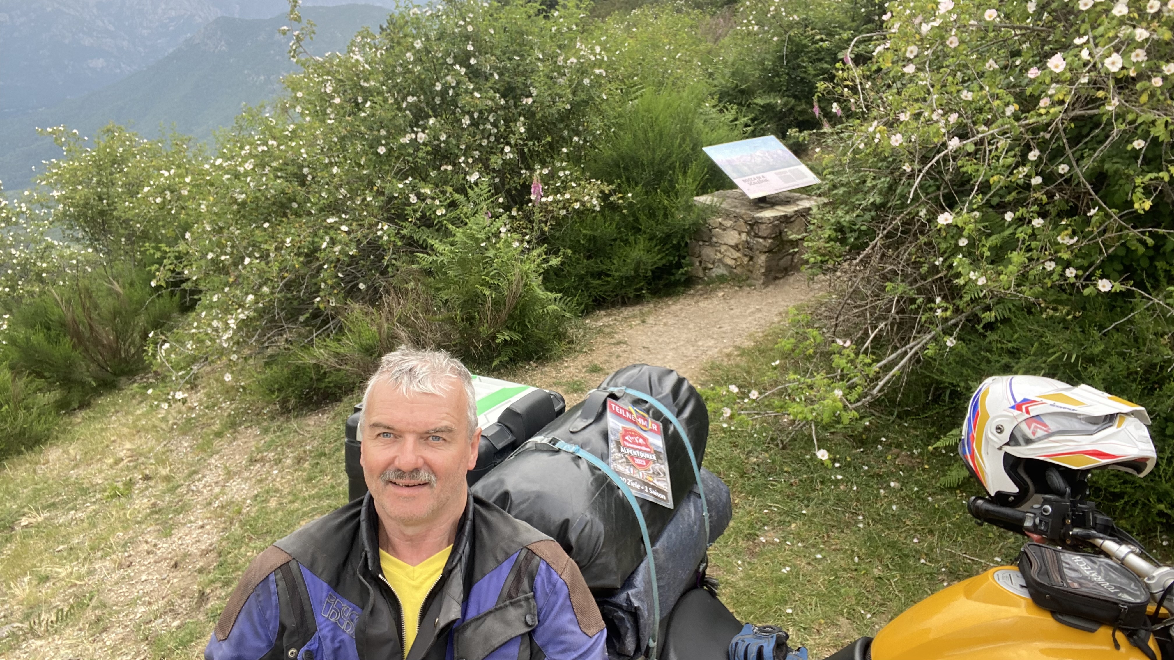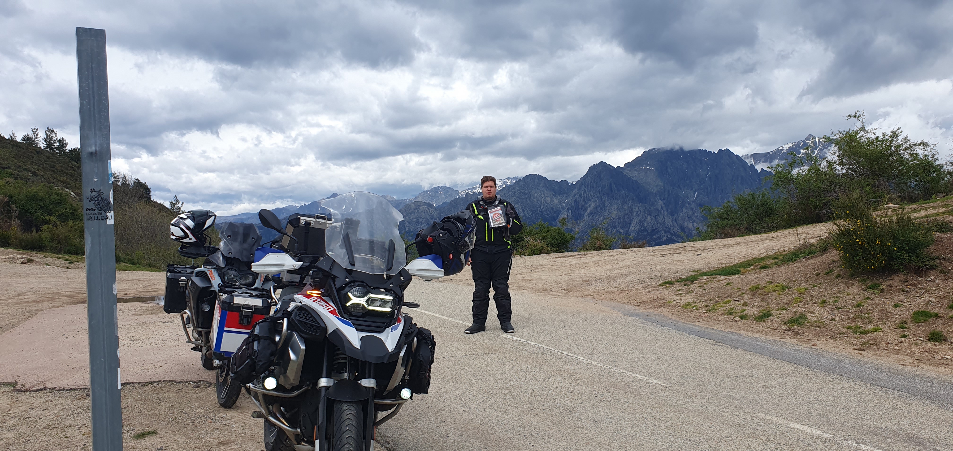 Nachtrag: Das Schild mit der Beschreibung der Berggipfel (haben einige genommen) ist aktuell nicht mit dem Motorrad erreichbar, das Unwetter hat eine breite, tiefe Rinne ausgeschwemmt, der gesamte Bereich war heute aufgeweicht...