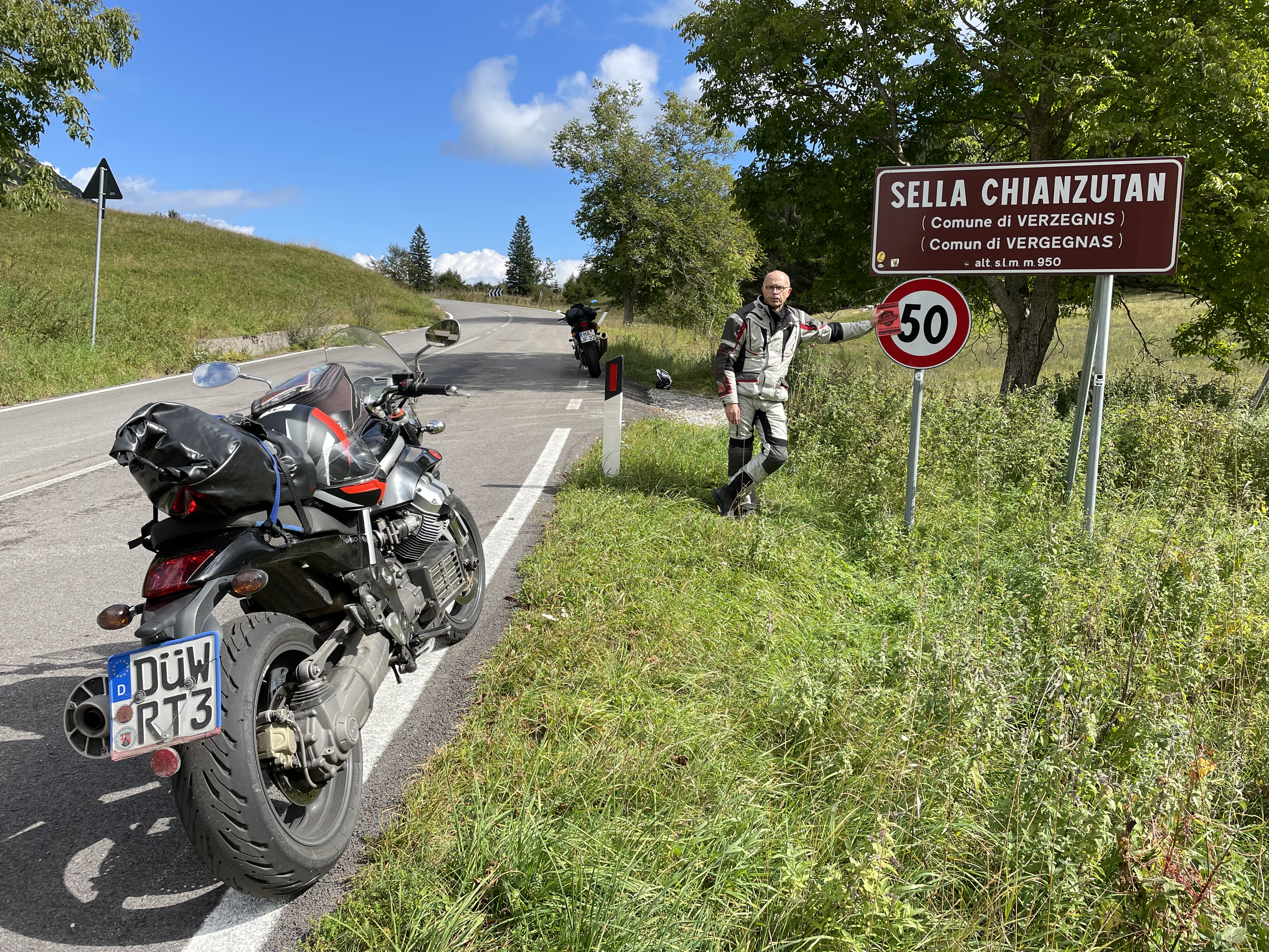 Tolmezzo ist der Hauptort der Karnischen Alpen und kann mit einer Einwohnerzahl von etwas über 10.000 fast schon als eine Großstadt in dieser Region bezeichnet werden. Vor allem ist er ein prima Ausgangsort für die Befahrung des Sella Chianzutan. Kurz nachdem man den Fluss Tagliamento überquert hat, geht es auch schon auf die Ostrampe dieser Passstraße, die als SP1 ausgewiesen ist. In schönem Kurvenschwung geht es nach Verzegnis, wo Kunstliebhaber einen kurzen Abstecher in Richtung Norden einplanen sollten, um sich Villa di Verzegnis näher anzuschauen. Es handelt sich um ein Freilichtmuseum, in dem zeitgenössische Skulpturen – unter anderem von Bruce Nauman, Richard Nonas, Dan Graham und Richard Long – in die Landschaft integriert wurden. Der Eintritt ist kostenlos und lohnt sich! Zurück auf der Passstraße passiert man noch den Lago die Verzegnis bevor man in westlicher Richtung dem recht unspektakulären Scheitel auf 950 Meter Höhe entgegen fährt. Ab dort wird es dann auch fahrerisch interessant: Die Südrampe kann mit einigen schönen Kehren auf gutem Asphalt begeistern, bevor sie beim Weiler Pozzis ausläuft. |