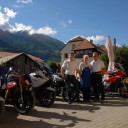 1 Familie auf 2 Rädern: Erich, Kaj, Gallus und Stefan - alles begeisterte Biker. Böse Zungen behaupten, ihnen wäre alles recht, was einen Sattel hat. Nur weil sie neben dem BMW Testride-Center auch noch einen Stall voller Pferde pflegen. Auch wenn beides mit Pferdestärken zu tun hat, bevorzugt die junge Generation eindeutig die PS mit 2 Rädern. Als Gast genießt man die persönliche Atmosphäre des Biobauernhofs und die davon beeinflusste, regionale Küche. Motorradurlaub im Vinschgau, zwischen Stilfserjoch und ReschenseeDas Dreiländereck Italien, Schweiz und Österreich ist eine der begehrtesten Bike-Reviere in den Alpen. Täglich hast du die Auswahl zwischen den bekanntesten Pässen im Alpenraum: z.B. das Timmelsjoch, den Passo Stelvio, den Gavia Pass, den Bernina Pass, den Mendelpass zum Kalterer See und viele mehr. Daneben findet man auch schnellere Passagen und gut versteckte Enduro-Wege. Jeden Mittwoch zeigt dir einer der Gas(t)geber auf einer 200 bis 300 Kilometer langen Motorradtour die genialsten Strecken und perfekte Aussichtsplätze. |